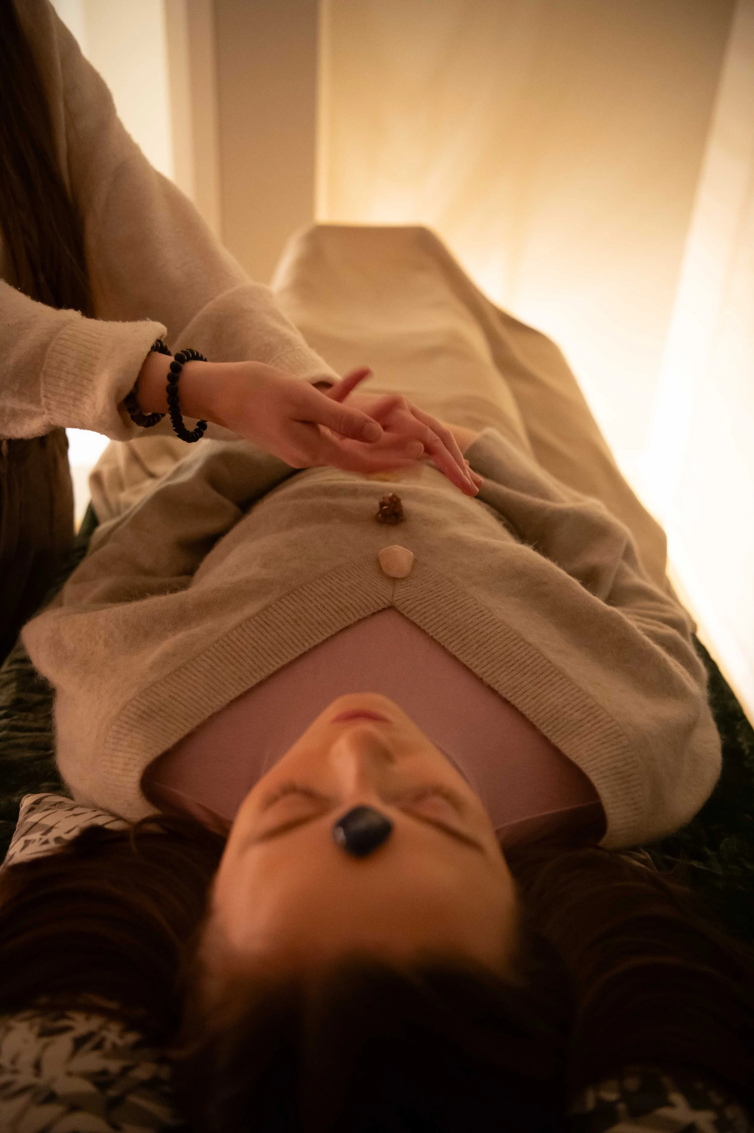 Du ligger på en behandlingsbenk med et teppe over deg dersom ønskelig. Jeg utfører ulike håndplasseringer rundt om på kroppen din mens du slapper av og mottar energien. Jeg er kun en kanal.